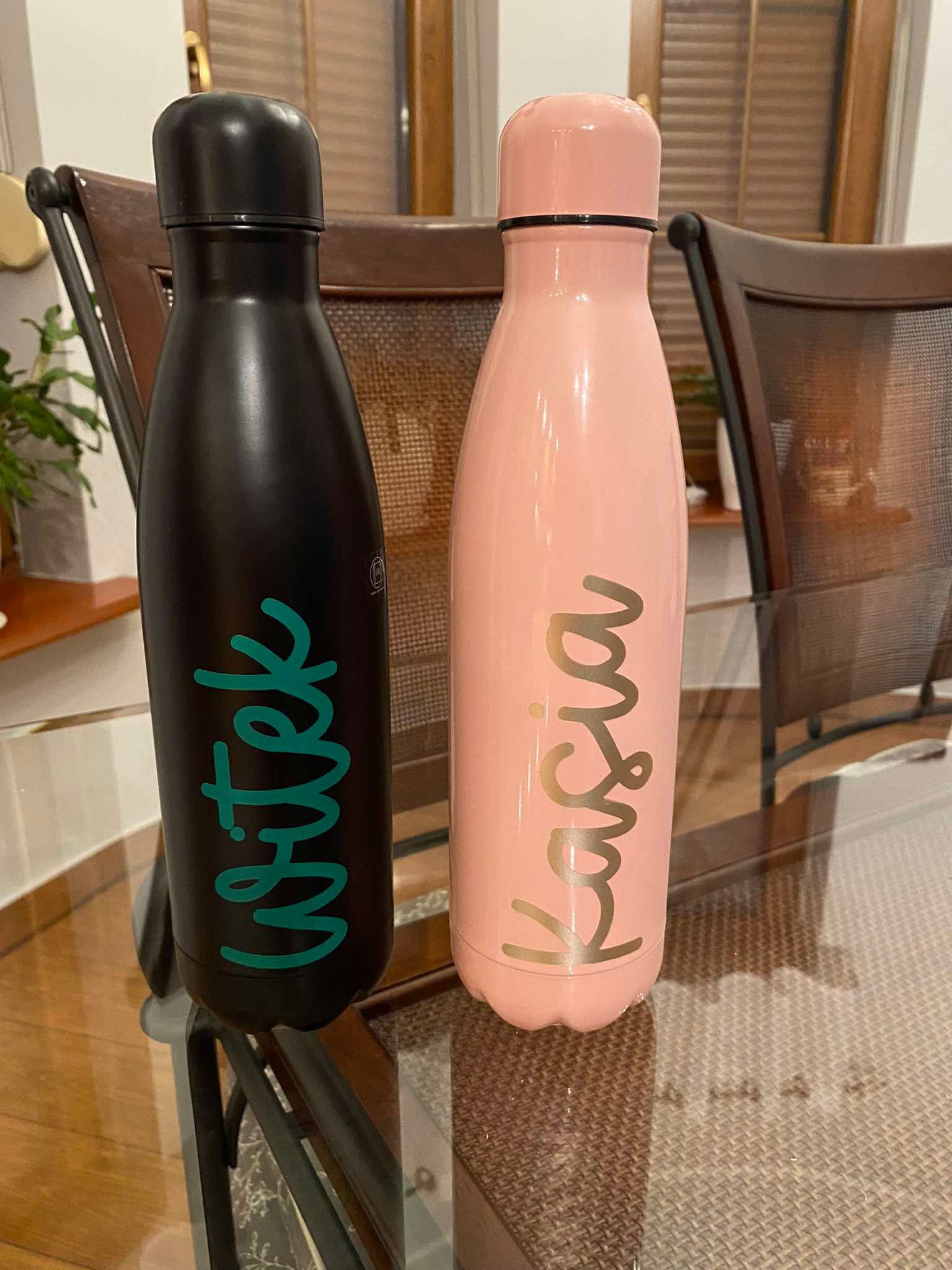 Elegancka butelka termiczna z dowolnym napisem lub imieniem. Utrzymuje temperaturę do 4h. Idealna na prezent – funkcjonalna i stylowa.