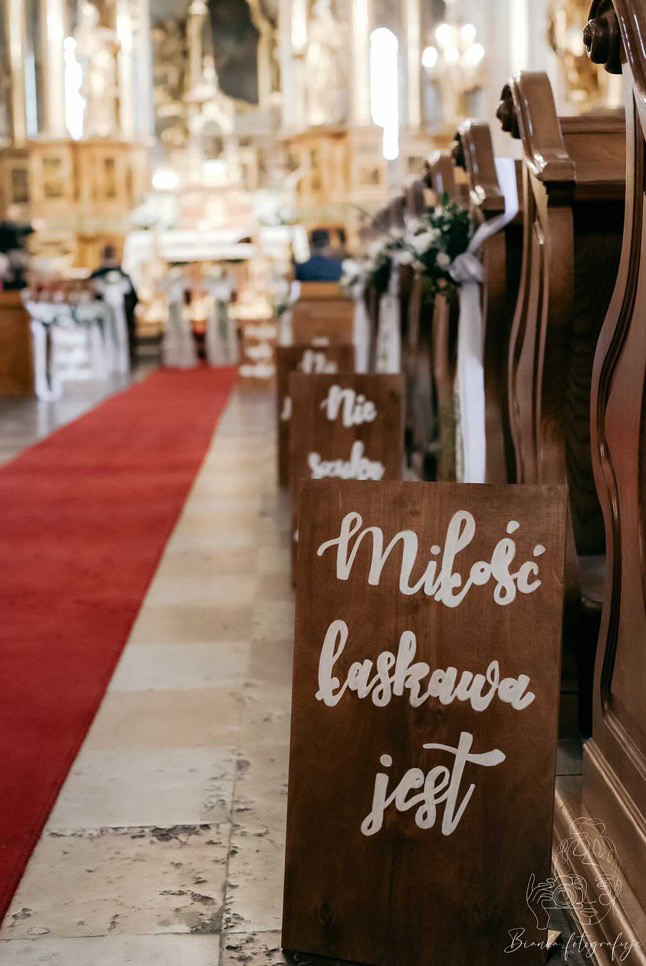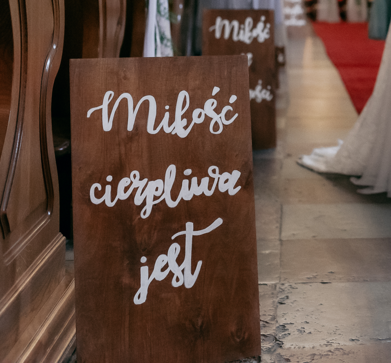 Tabliczki możesz ustawić przy wejściu, na ścieżce do ołtarza, w strefie chillout lub wśród dekoracji przy stole pary młodej. To ponadczasowy detal, który zachwyca swoją prostotą i przesłaniem.